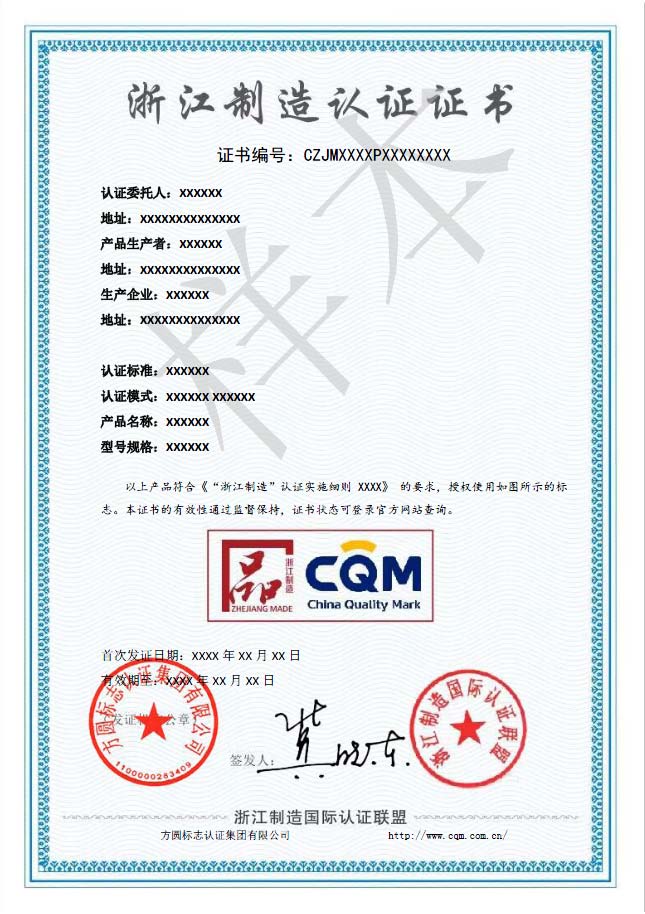 為了使獲得方圓標(biāo)志認證集團有限公司(以下簡稱CQM或方圓集團公司)頒發(fā)的“浙江制造”認證證書(“浙江制造”證書)的組織規(guī)范使用認證證書、標(biāo)志制定本規(guī)則。